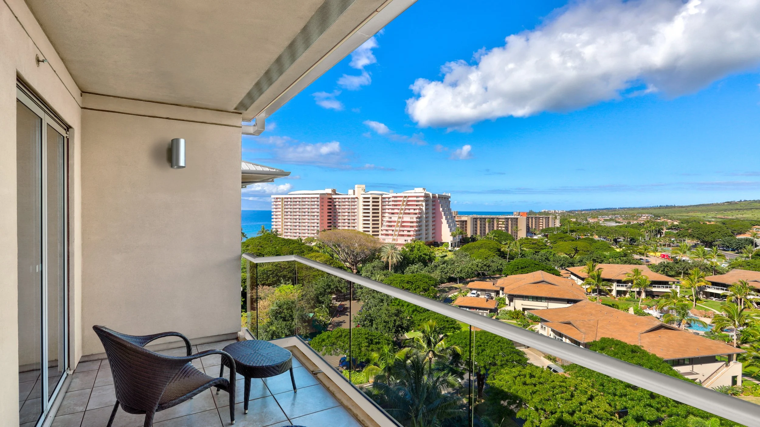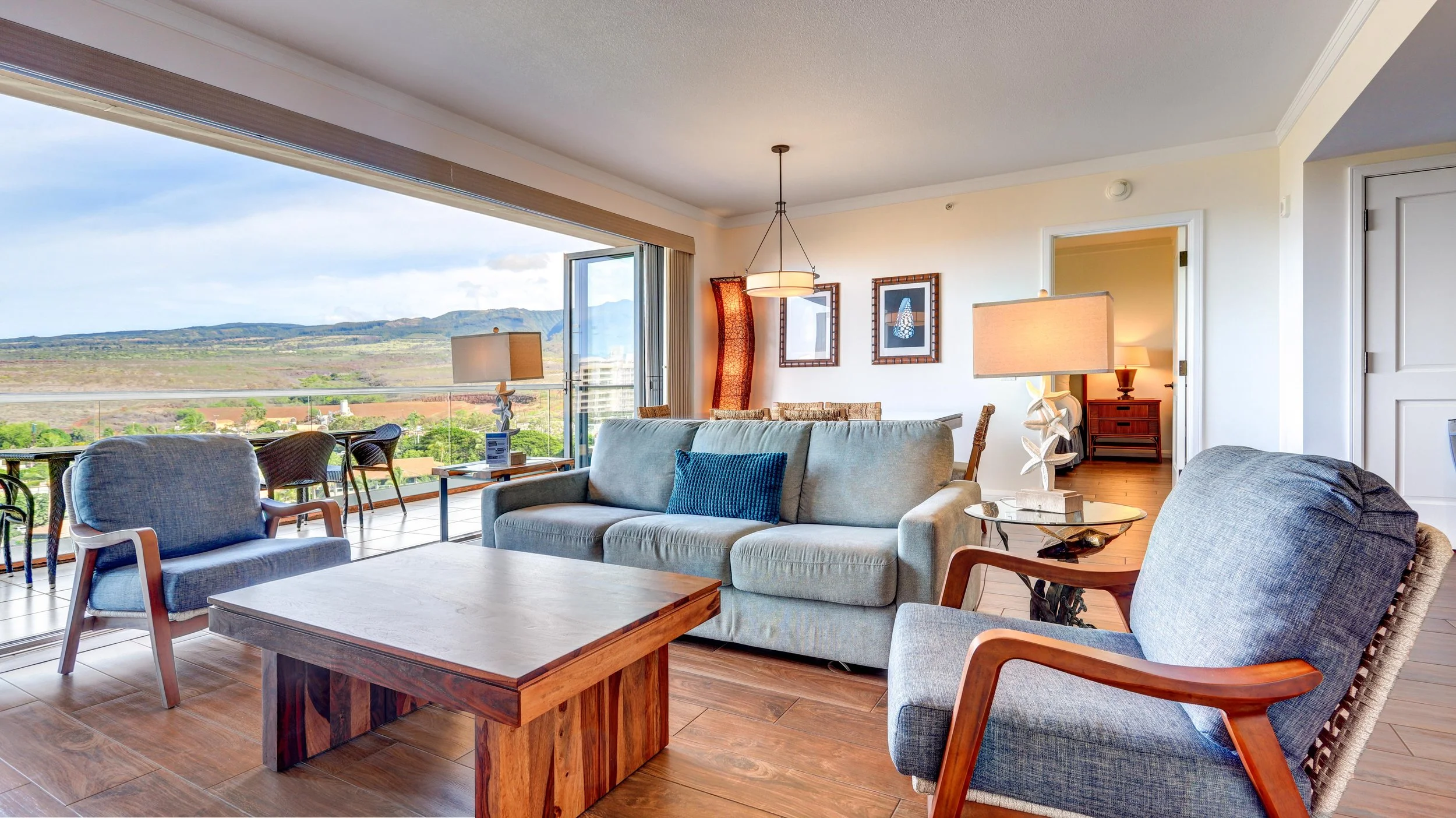 Maui resort indoor/outdoor living - Bi-folding glass walls open to outside covered lanai(balcony) with glass rail/walls for wonderful views